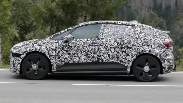 Макар окончателното му име да остава непотвърдено, слуховете в бранша сочат, че най-вероятно ще се нарича A3 e-tron, което го приравнява по размер към конвенционалния хечбек A3 – име, което е много по-познато на клиентите, отколкото евентуалното възраждане на A2 e-tron. Тази стъпка подчертава и неотдавнашната стратегическа промяна на Audi да се откаже от конвенцията за наименуване на електромобилите с четни номера. Въпреки очакваното име A3, впечатляващата силуетна форма на автомобила с издължена кабина, стръмно наклонено предно стъкло и къс капак е ясен стилистичен поклон към ексцентричния, класически хечбек Audi A2 от началото на този век. Ключовите дизайнерски елементи, забелязани на тестовия модел, включват по-ниска и по-елегантна линия на покрива в сравнение с Volkswagen ID.3, дизайн на задната част, който изглежда като поклон към двукомпонентното стъкло на багажната врата на A2, и характерните разширени калници. Предната част обаче ще възприеме настоящия стил на Audi с тънки горни дневни светлини и решетка, подобна на тази на Q4.