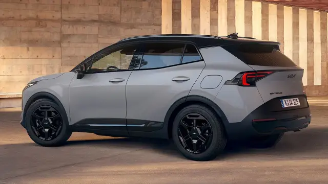 Екстериорът на Black Edition се определя от всеобхватния пакет „dark mode“. Характерната решетка „Tiger Nose“, предните и задните елементи, релсите на покрива и рамките на прозорците са изцяло в черен гланц. Дори емблемите на Kia и Sportage са в черно, а радиаторната решетка е със специална вложка от тъмен метал. За да допълни профила, специалното издание се предлага с избор от 17-, 18- или 19-цолови алуминиеви джанти – всички с гланцово черно покритие – контрастиращи с матово черните арки на калниците. За тези, които търсят още по-голяма визуална отличителност, Kia предлага опция за двуцветна каросерия, позволяваща много от десетте налични външни цвята да бъдат съчетани с контрастиращ черен покрив.