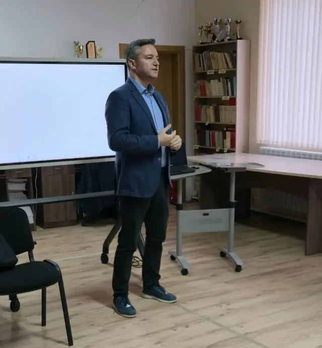 Евродепутатът получи подарък - ръчно рисувана икона, изработена от ученици и учители, като символ на уважение, вдъхновение и духовна свързаност.