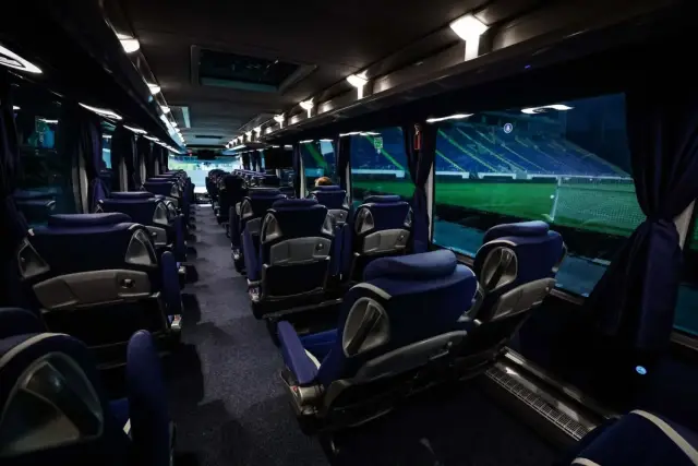 Автобусът е с дължина 14 метра и разполага с 35 места в конфигурация 2+1 със седалки Ambassador – най-високият клас при Setra. Интериорът е изцяло в синята идентичност на клуба, с равен под, брандирани подглавници и пълен комплект удобства: тоалетна, аудио-видео система, двузонов климатик, USB порт за всеки пътник и бордов токопреобразувател 230V / 2300W.