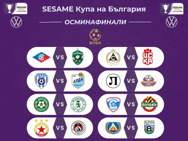 Жребият за Втори кръг финална фаза (осминафинали) на SESAME Купа на България определи следните двойки отбори, които ще участват в този етап от турнира:
