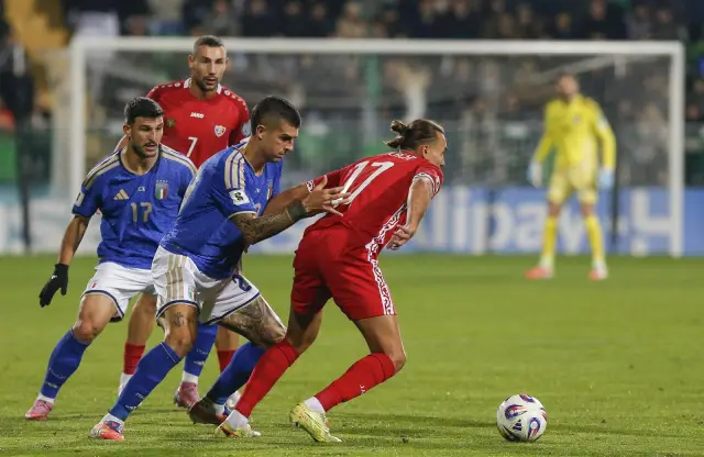 Следващите пропуски пък бяха дело на Дзакани, Орсолини и Джанлука Манчини. Чак в 33-тата минута молдовците стигнаха до първия си удар, но изпълнението на Виргилиу Постолачи се оказа неточно. В заключителните минути италианците продължиха да атакуват, но шутовете на Кристанте и Орсолини не намериха целта.