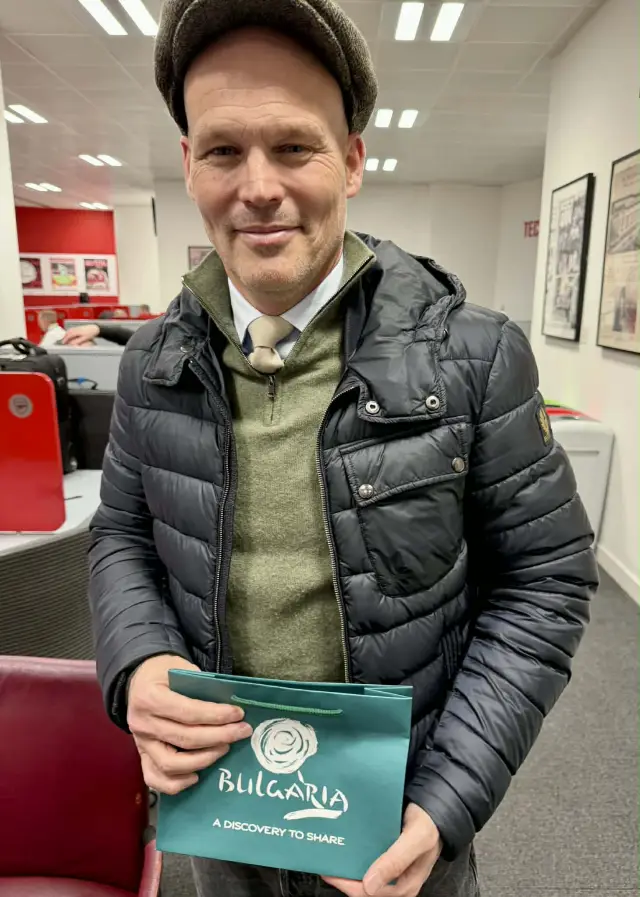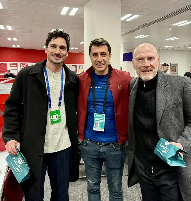 Освен с него, на „Емиратс“ бургазлията се засече със световния шампион Матс Хумелс и златната топка Матиас Замер, на които също подари торбички с наши сувенири.