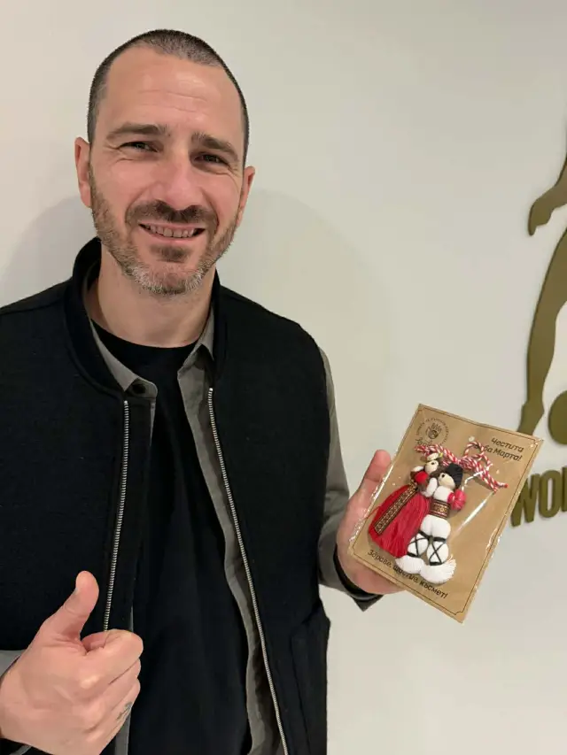 Нашенецът е използвал случая, за да подари мартеница на легендарния бранител на Ювентус и „скуадра адзура“. „Леонардо се зарадва на мартеницата, аз му пожелаха да му донесе късмет в предстоящите баражи на Италия за класиране на световното първенство“, споделя Евтимов.