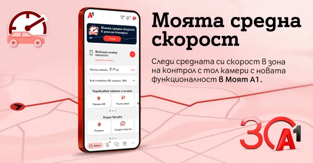 Новите правила за контрол на средната скорост вече са част от ежедневието на шофьорите. Тол камерите измерват движението между две точки, а не само моментната скорост – и това промени начина, по който всички мислим за пътуването си. Ако преди гледахме километража и се успокоявахме, че сме под ограничението, сега често се чудим дали няма да получим изненада по пощата. А1 е първият оператор, който превръща това предизвикателство в удобен дигитален инструмент за своите клиенти: в приложението Моят А1 вече е достъпна функционалността „Моята средна скорост“.