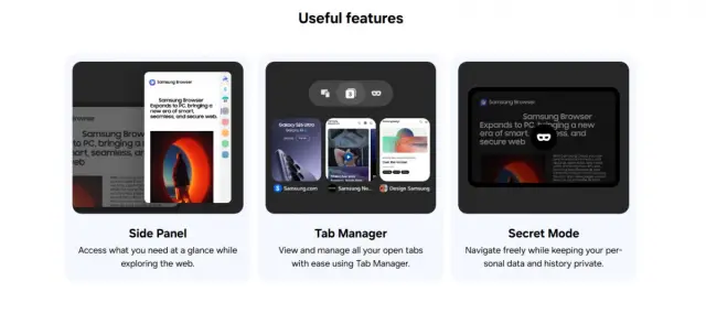 Samsung Browser предлага и любими мобилни функции, като високо оценения тъмен режим и вграден блокиращ реклами модул, който работи без нужда от разширения на трети страни. За феновете на Galaxy включването на Samsung Pass означава, че биометричните данни за вход, използвани на смартфон, вече могат да се използват за автоматично попълване на потребителски имена и данни за плащане на настолния компютър, създавайки много по-съгласуван слой за сигурност между Windows и Android.