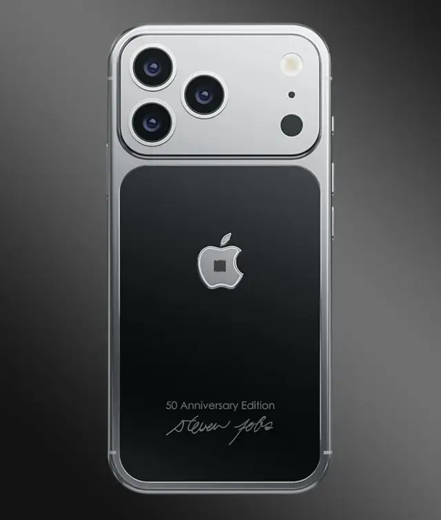 Дизайнът на JOBS Edition използва контрастна „черно-сребърна“ естетика, която отразява емблематичния двуцветен заден панел на оригиналния iPhone 2G. Долната част на устройството е изработена от удароустойчив черен титан с PVD покритие, докато горната част преминава в тъмно матово сребро. За да затвърди статута си на колекционерски предмет, рамката е гравирана с надпис „50th Anniversary Edition“ и реплика на подписа на Стив Джобс, докато логото на Apple е преместено нагоре, за да съответства на разположението му в модела от 2007 година.