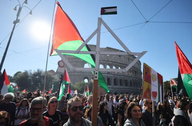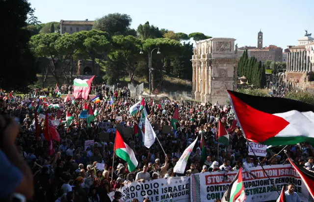 Многохиляден марш в подкрепа на Палестина се провежда в центъра на Рим в съботния следобяд, съобщава РИА Новости.